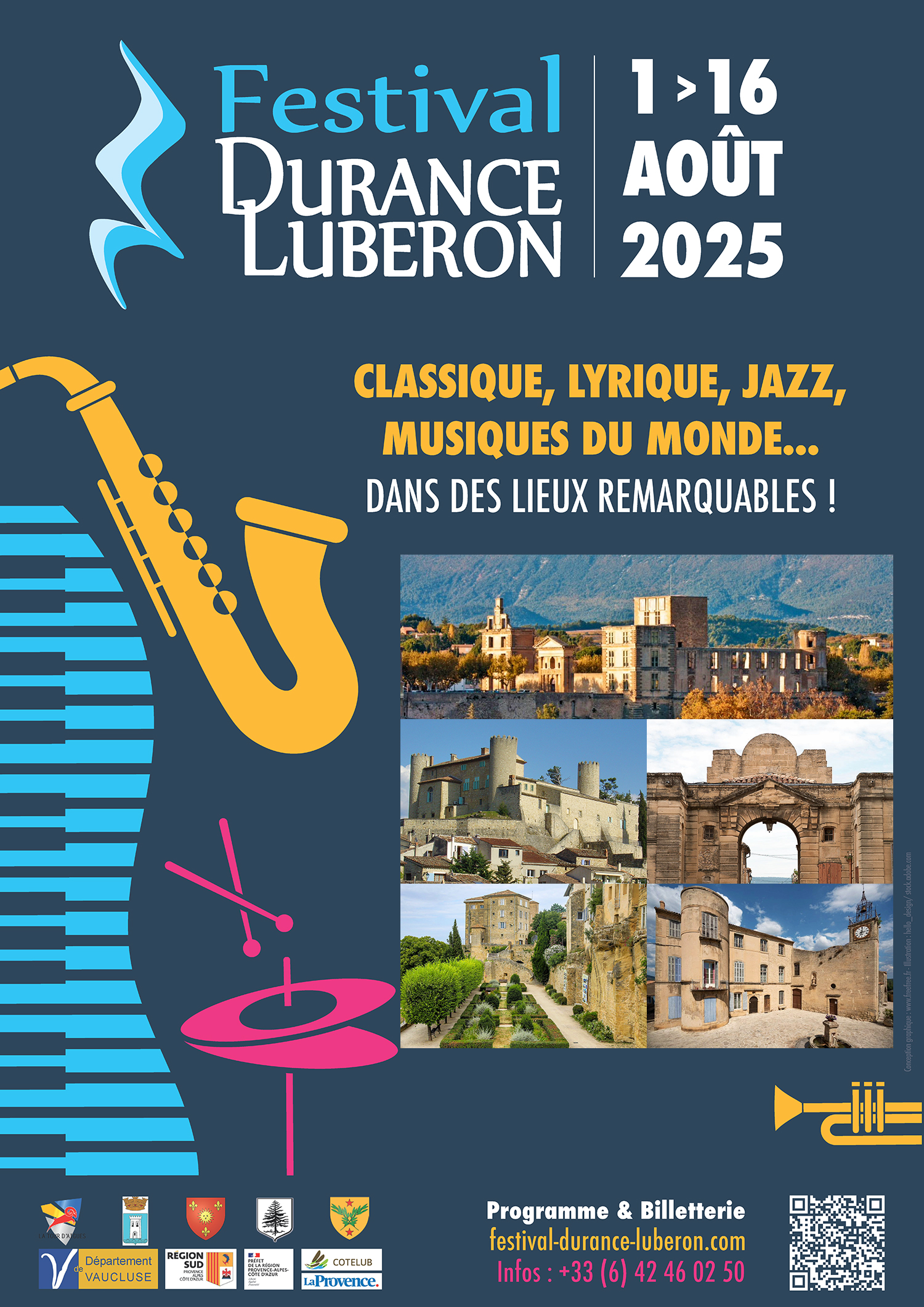- Le maillage géographique : des rives de la Durance aux monts du Luberon, du pays d'Aix à la vallée d'Aigues, la diffusion des événements culturels que nous proposons privilégie le plus grand nombre de lieux. L'accueil des spectacles dans des sites du patrimoine est recherché, qu'il s'agisse de lieux publics ou privés, laïcs ou de culte