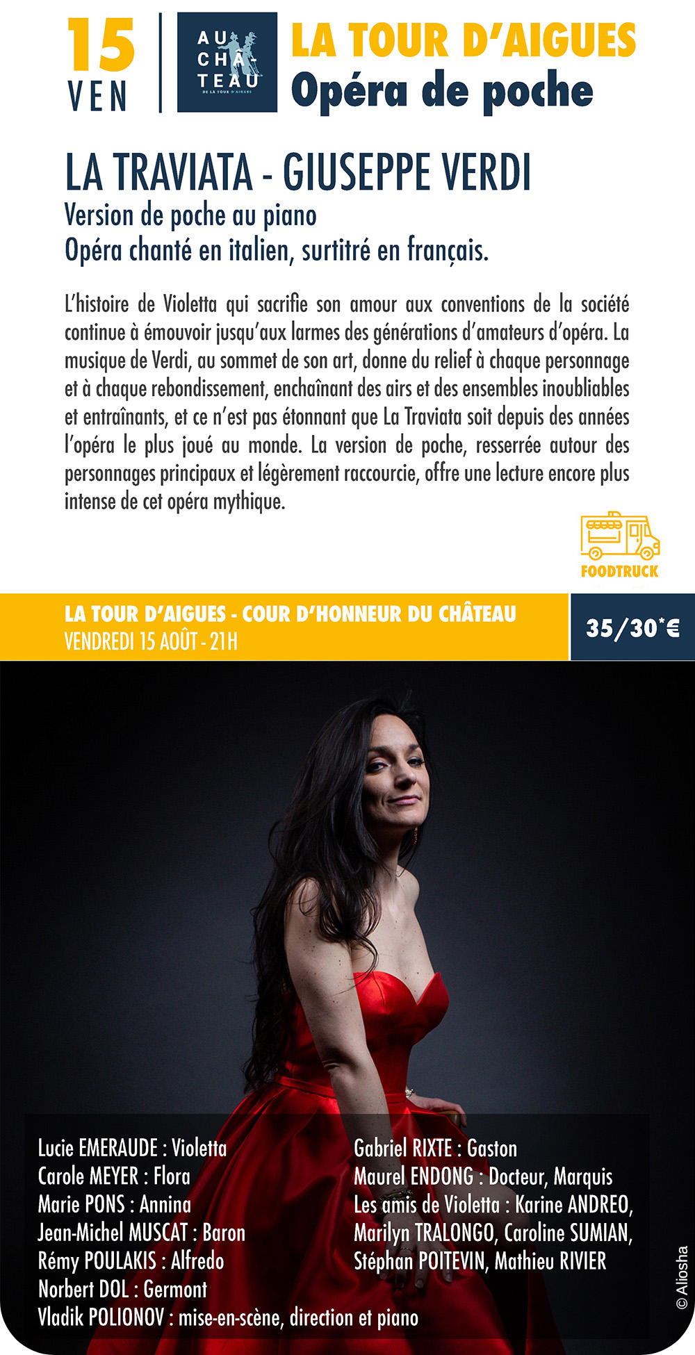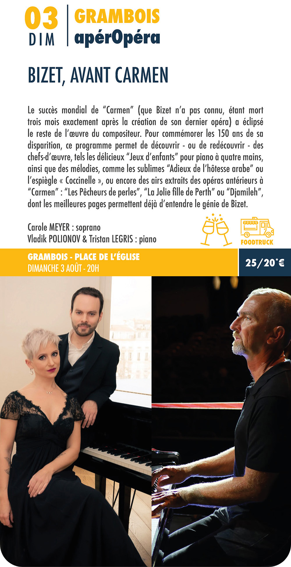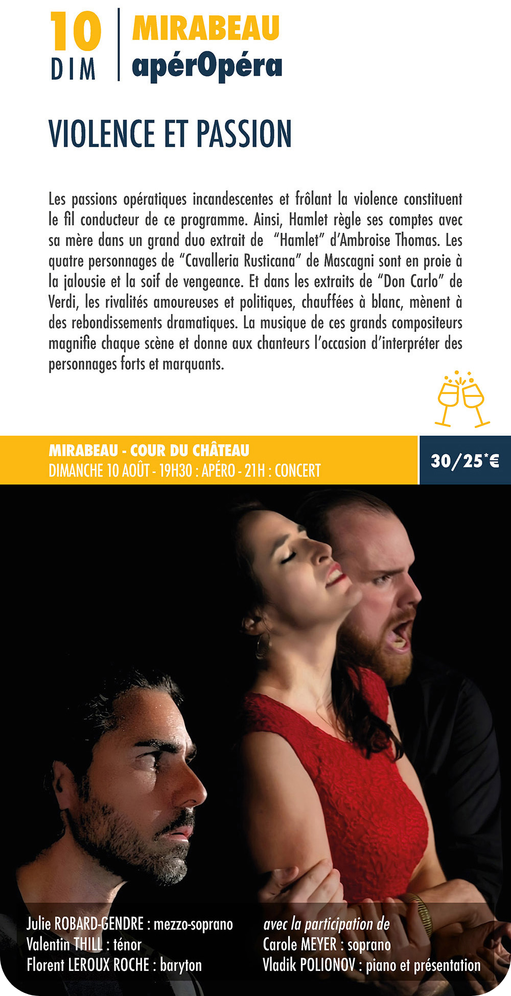 Les prestations qui accompagnent certains spectacles (notamment ApérOpéra, ApéroJazz, Dîner/Concert,…) ne sont garanties que pour les règlements effectués au moins 72 heures à l’avance.