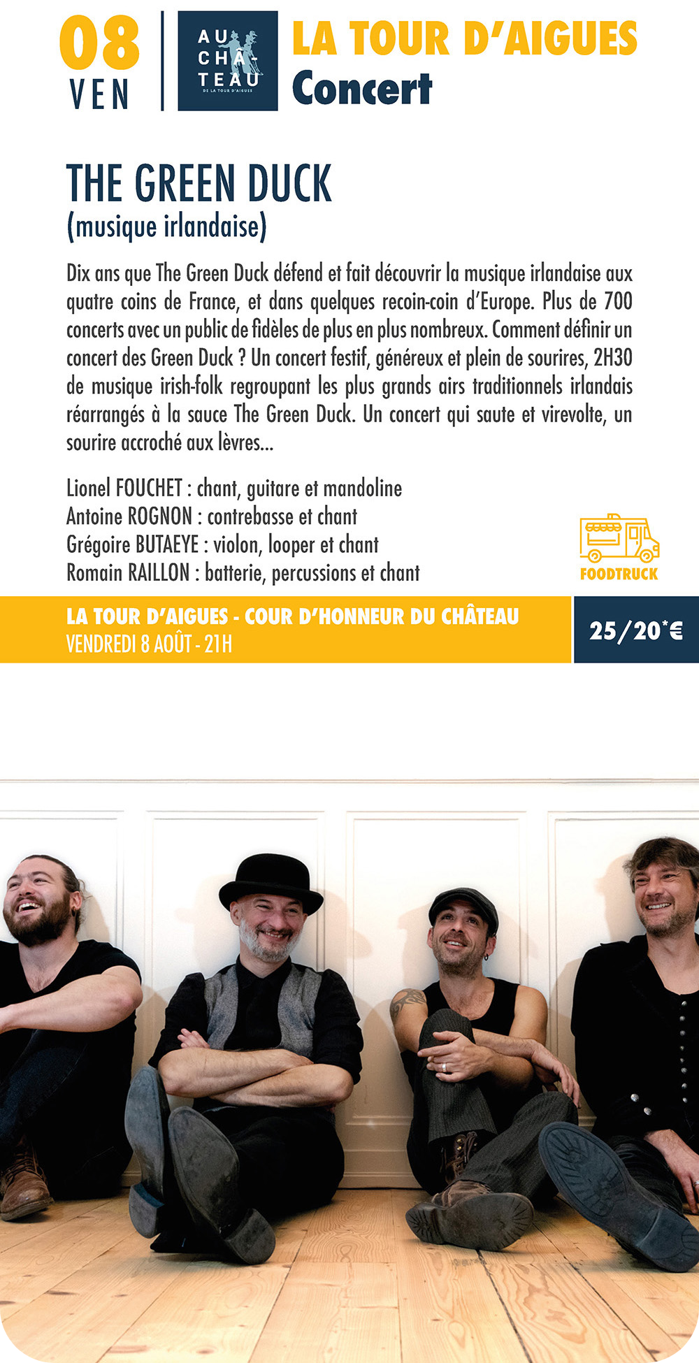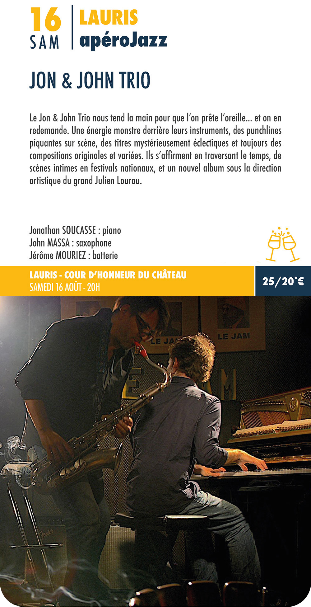 Billet à 6€, sauf le 10 août : 16€, selon les places disponibles, se renseigner à l'entrée...
