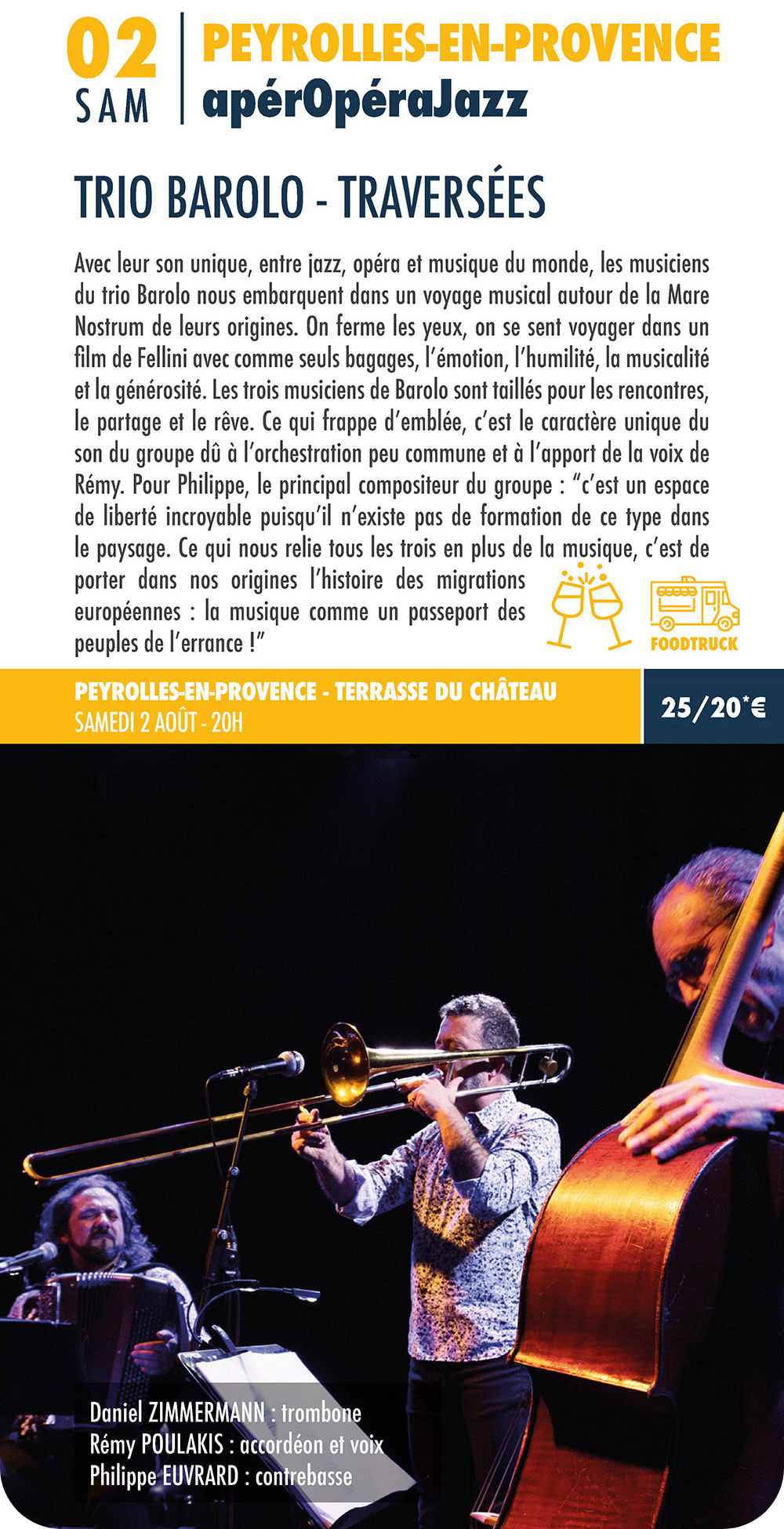 Les prestations qui accompagnent certains spectacles (notamment ApérOpéra, ApéroJazz, Dîner/Concert,…) ne sont garanties que pour les règlements effectués au moins 72 heures à l’avance.